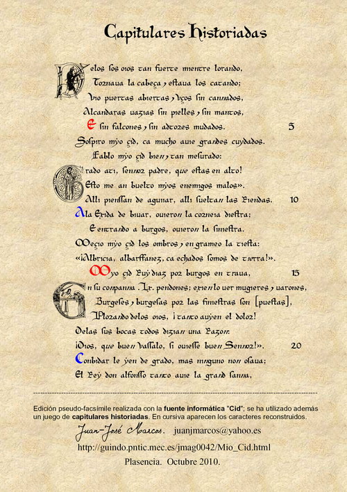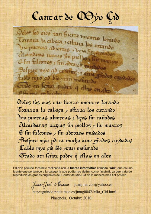 del Mío Cid transcrito paleográficamente con una de ellas + las